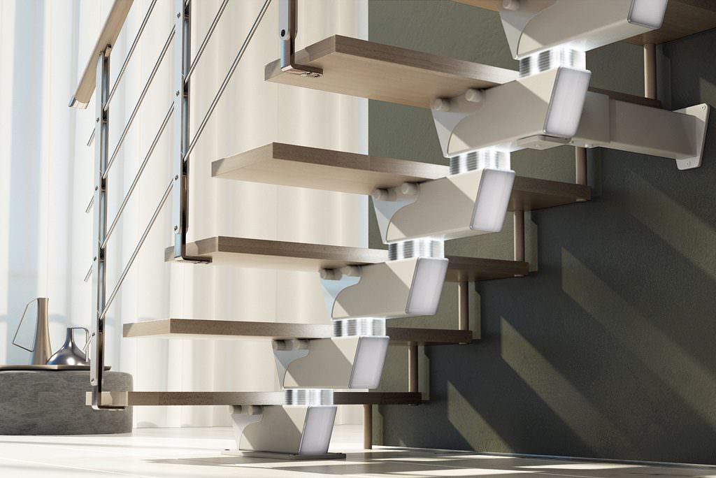 I moduli sono tra loro collegati mediante un sistema di fissaggio brevettato che offre una maggiore robustezza rispetto alle tradizionali scale elicoidali prefabbricate.