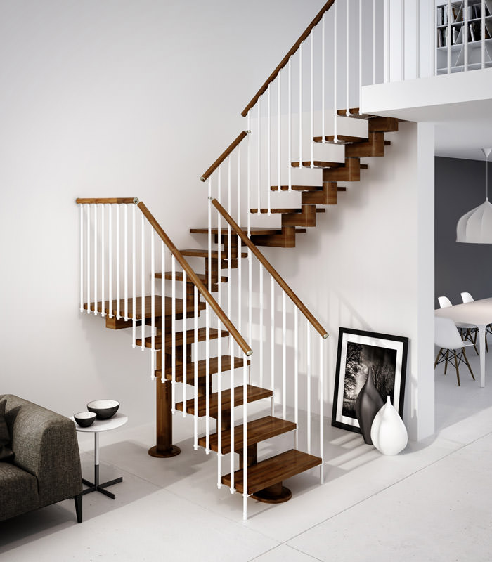 Flessibilità di composizione, adattabilità alle diverse necessità di progetto e alle caratteristiche abitative la rendono una scala estremamente versatile, capace di rendere attuale un materiale, fra i più classici e utilizzati nella produzione della scala, come il legno.