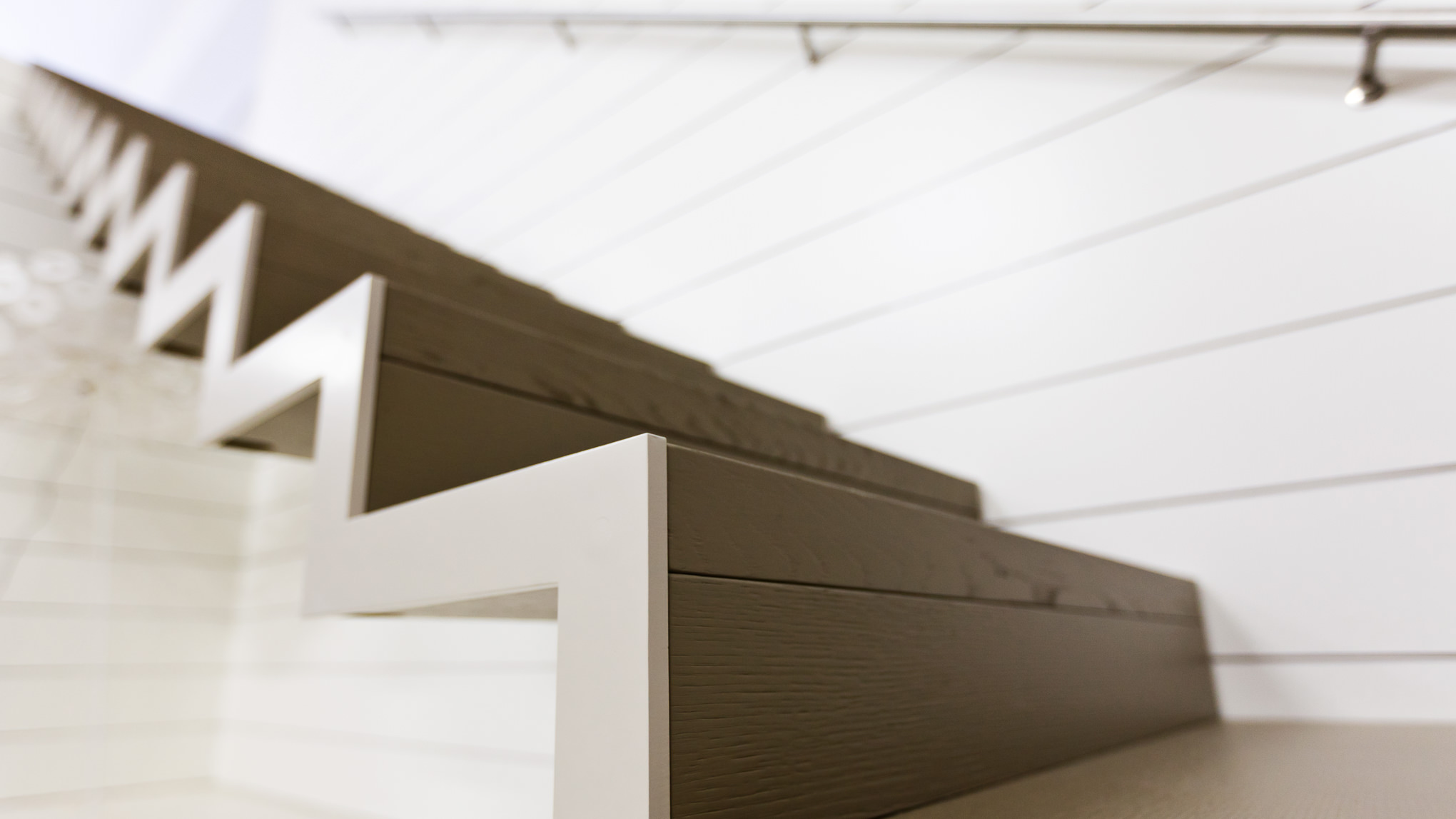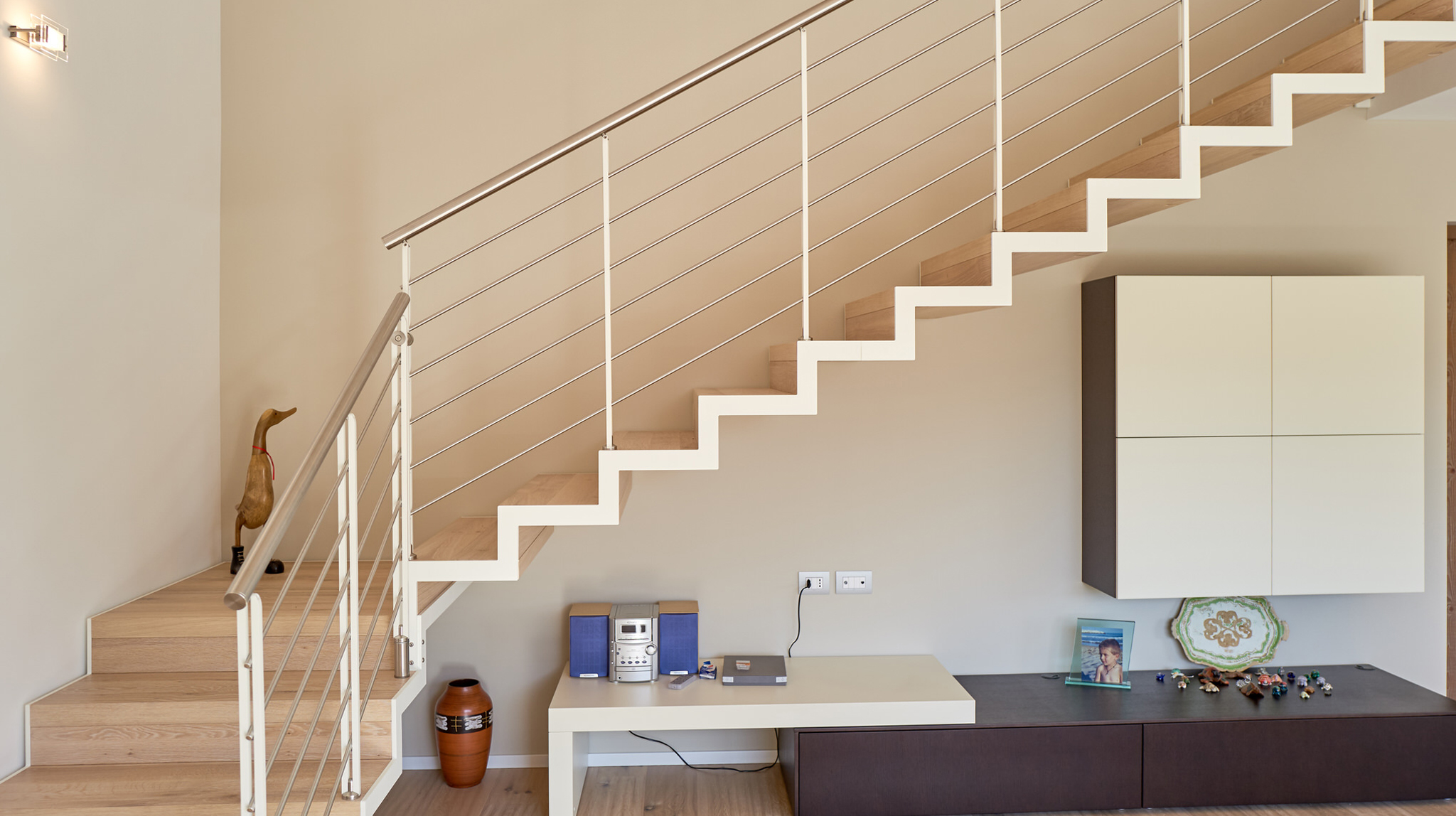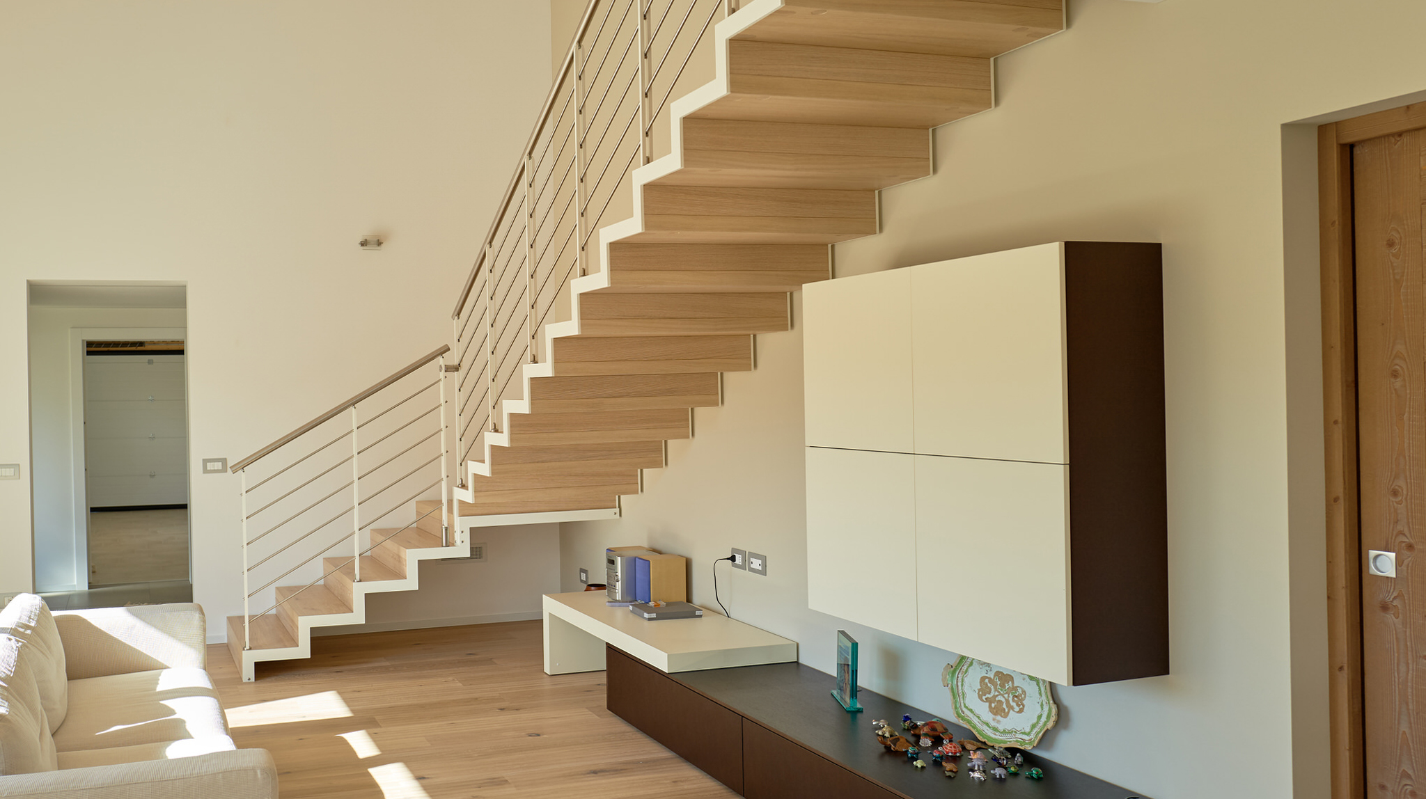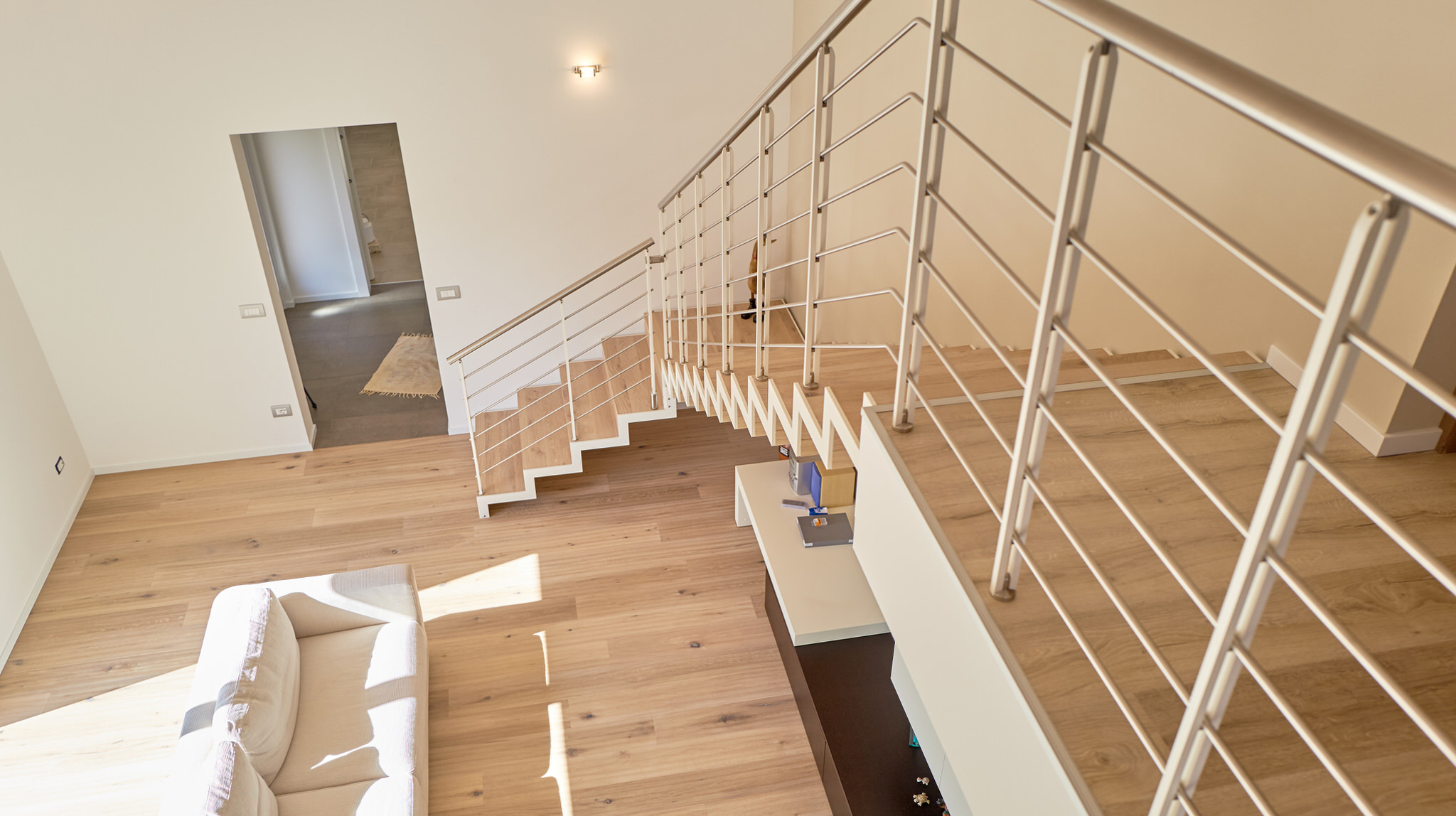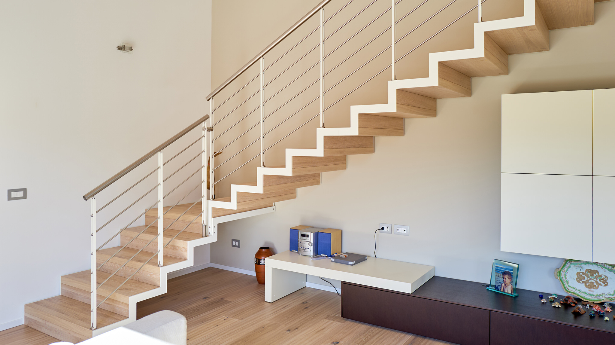 La linea Laser Wing è modello di scala dalla linea moderna, caratterizzata dall’utilizzo di una struttura portante in acciaio extrasottile tagliata al laser in ambo i lati senza ferramenta in vista, con possibilità di fissare la ringhiera direttamente sul gradino o esternamente alla struttura.