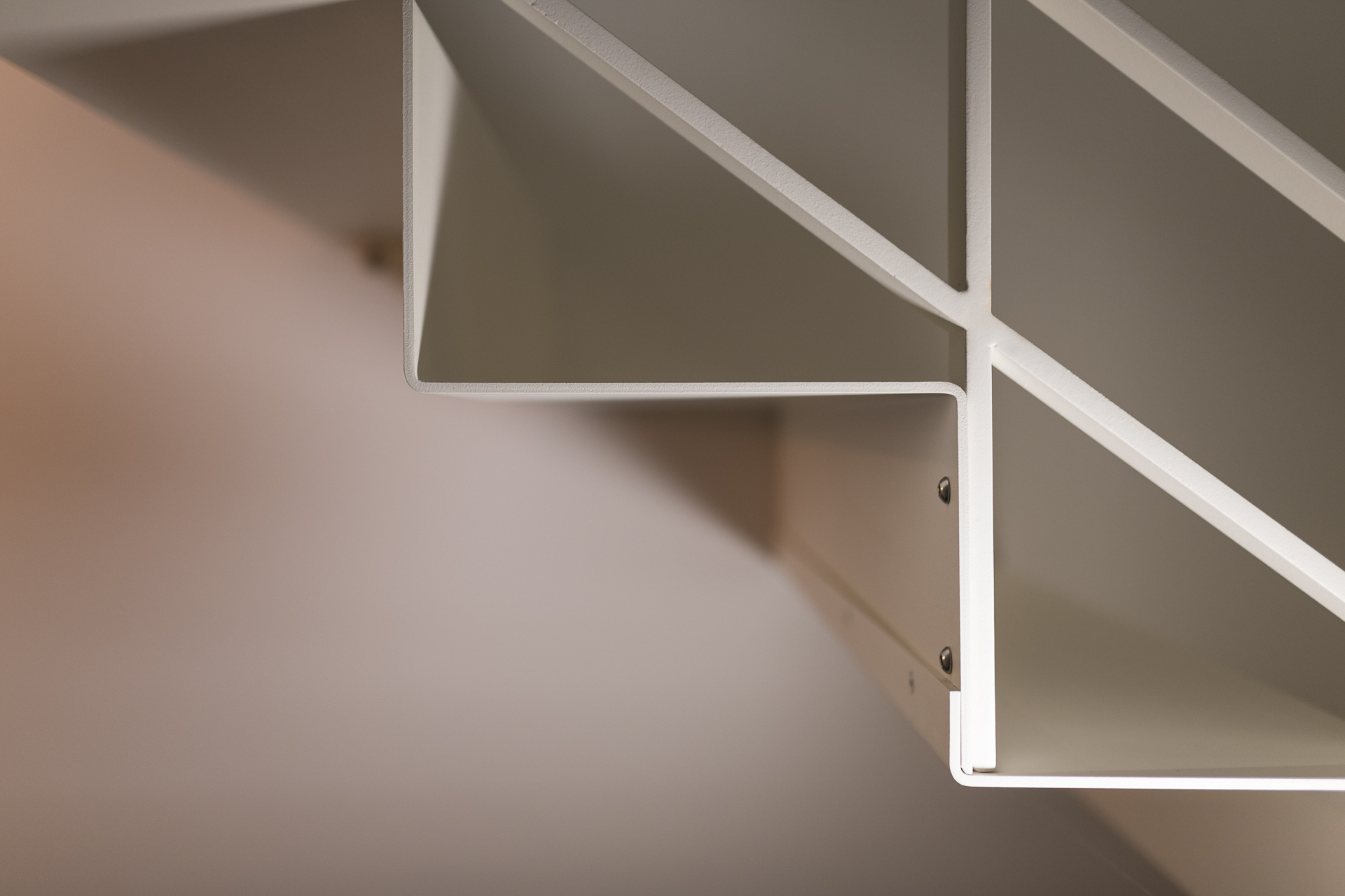 Il modello di scala a nastro ha una linea audace, consapevole, essenziale: la linea si trasforma in forma, l’eleganza è data dall’assenza di eccessi.