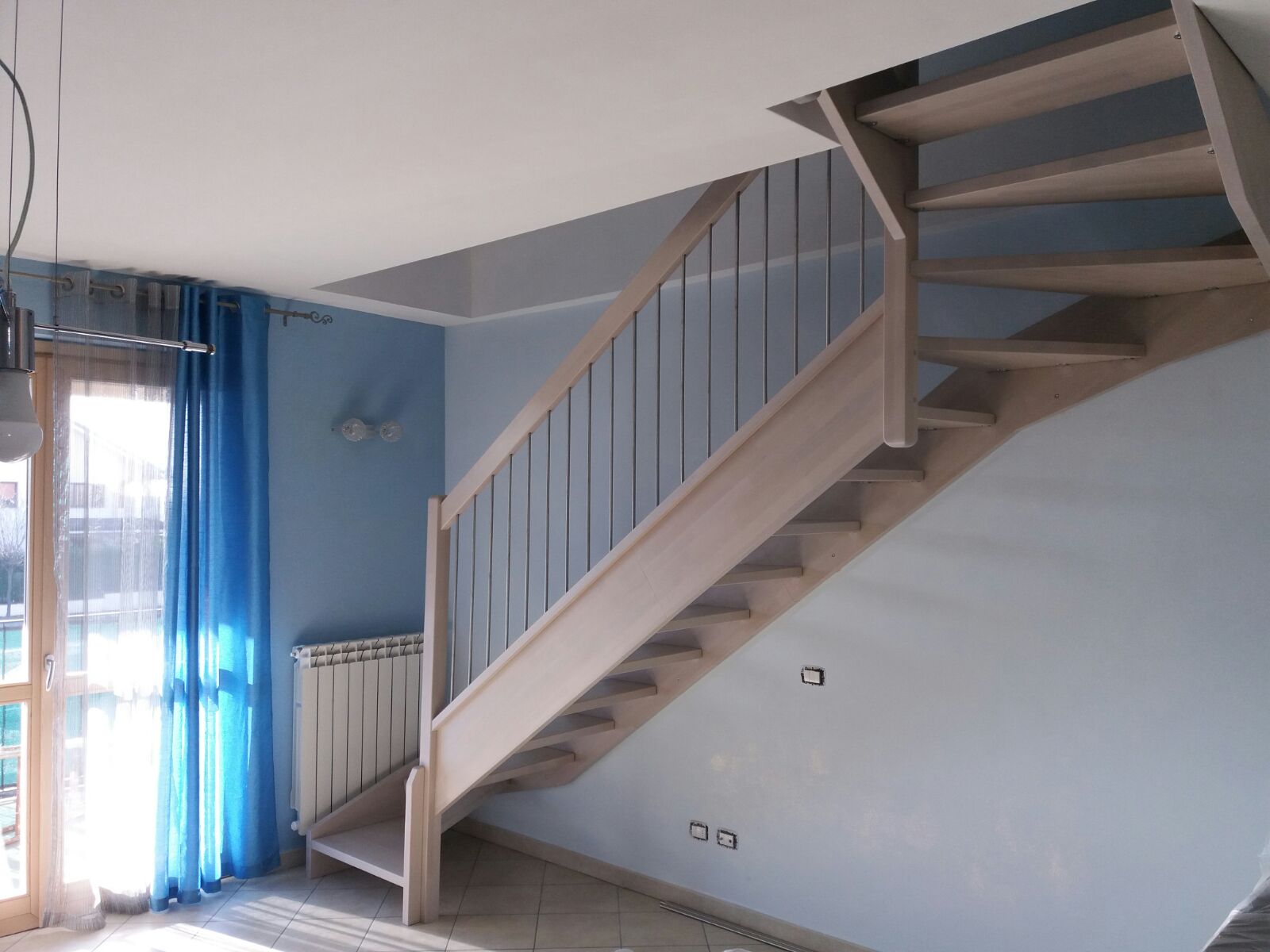 Scala con doppio cosciale in legno e ringhiera in legno con caposcala.