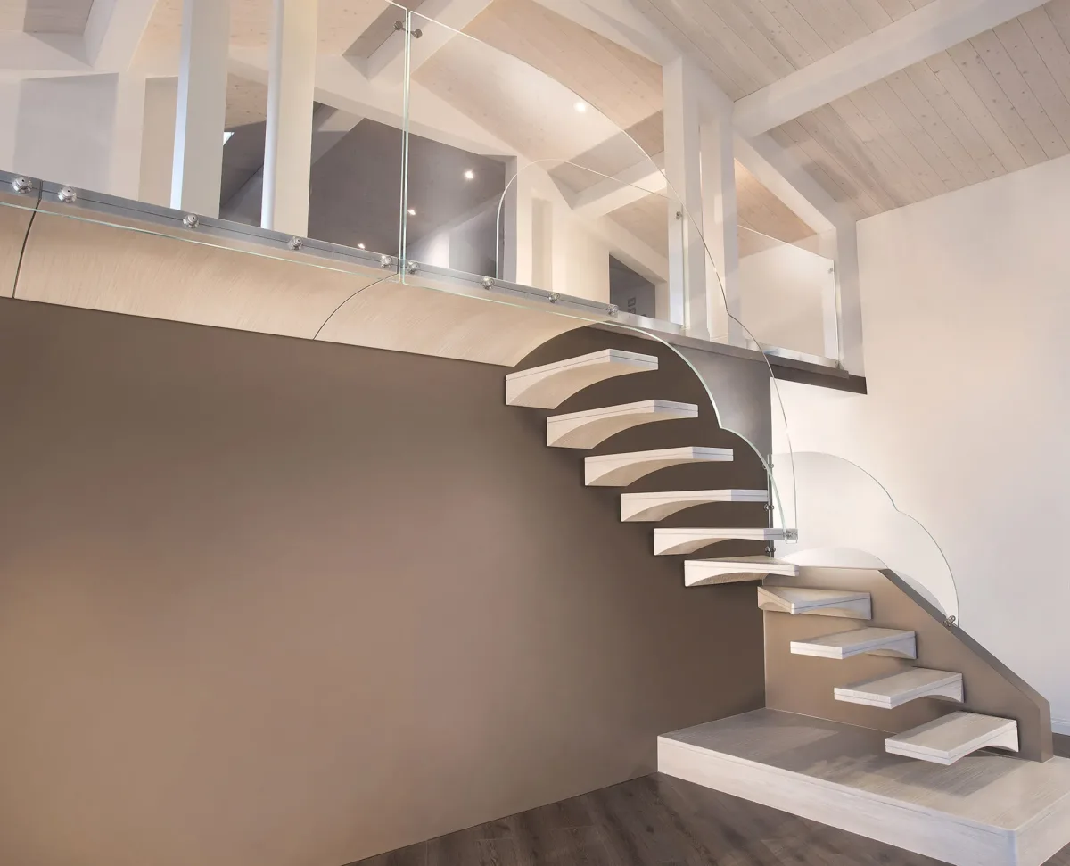 Le scale a sbalzo ALA DI GABBIANO sono composte da gradini in legno forniti in varie essenze