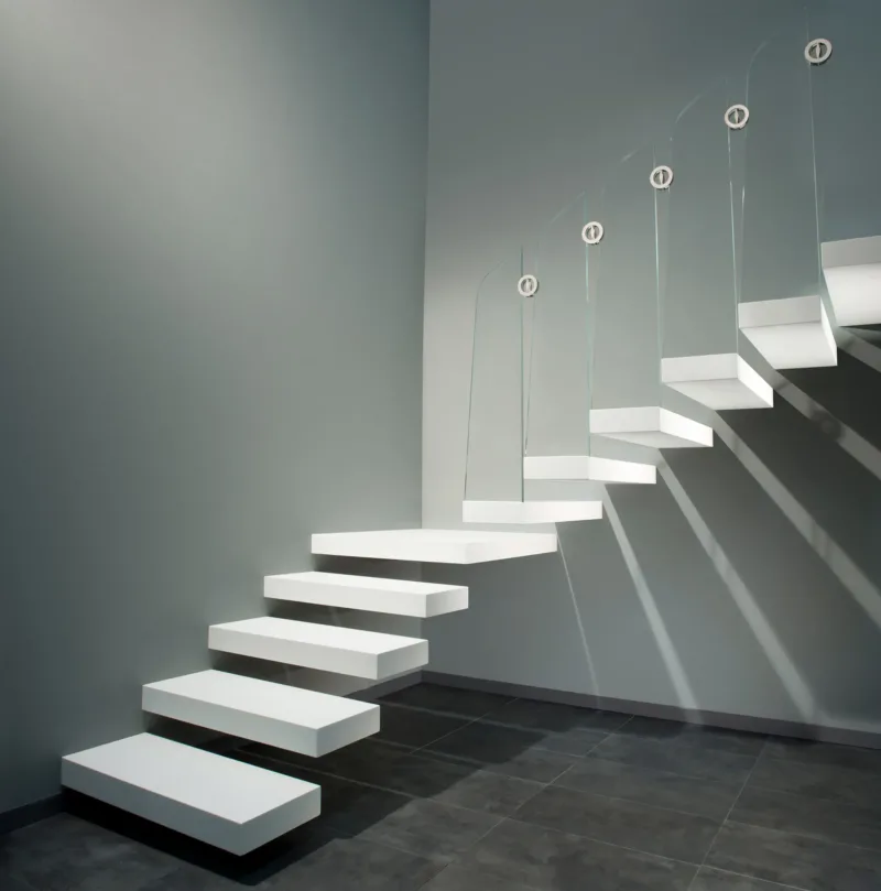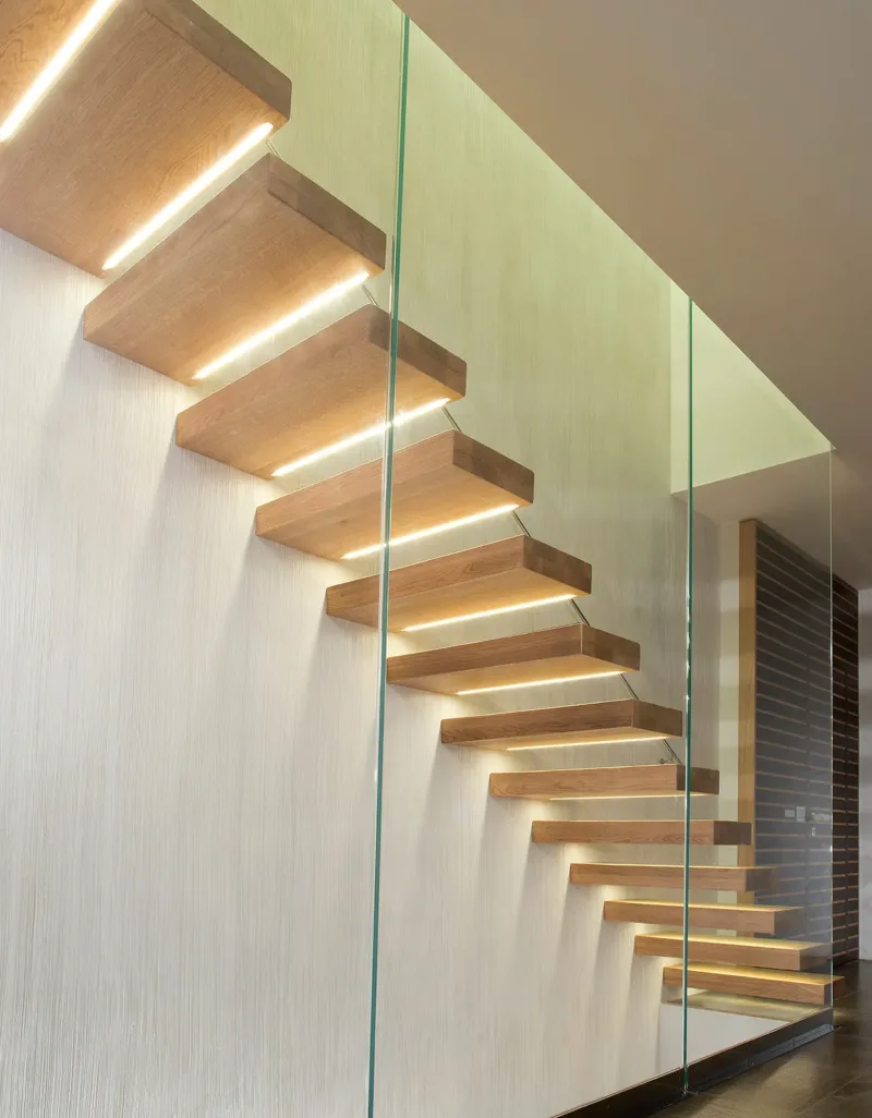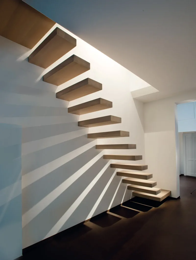 La scala a sbalzo NUVOLA è composta da gradini in legno forniti in varie essenze (Faggio, Rovere,